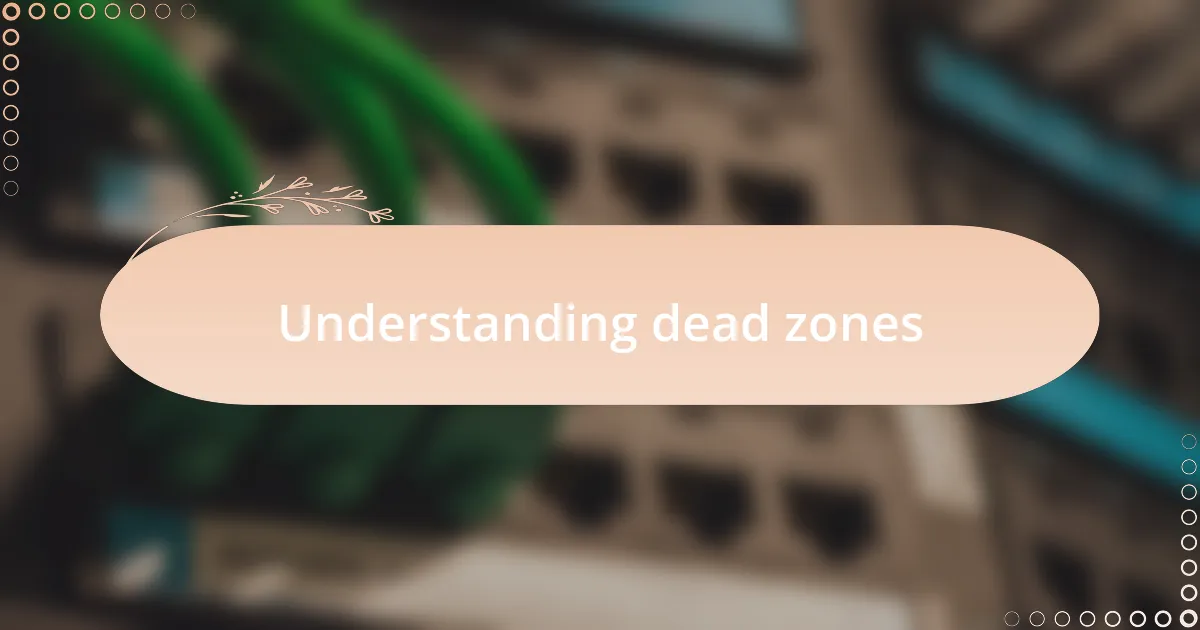 Dead zones are areas where cellular signals fail completely or are significantly weakened, leading to frustrating experiences for users. I’ve found myself in one of these frustrating spots while hiking in a remote area; suddenly, all my navigation tools became useless. It’s baffling how just a few steps can mean the difference between a strong signal and absolute silence.